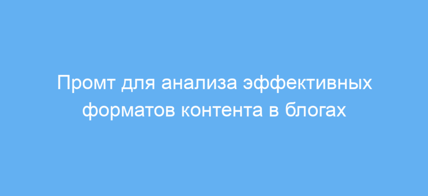 Этот промт позволяет быстро получить экспертный анализ и стратегический план по выбору контент-форматов, исходя из предпочтений вашей аудитории и тематических трендов. Благодаря ему можно сэкономить время на исследованиях и сделать публикации более эффективными, повысив вовлечённость, активность и трафик блога.