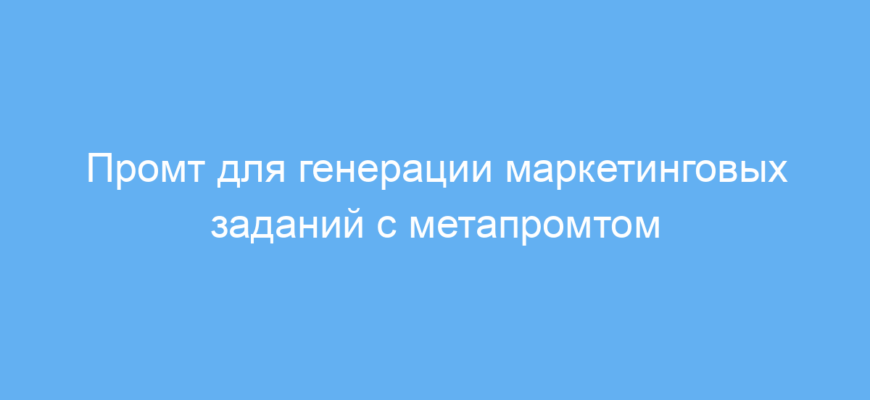 Использование данного метапромта позволяет структурировать маркетинговые задания и быстро создавать точные инструкции для нейросети. Это значительно экономит время и обеспечивает высокий уровень релевантности создаваемого контента вне зависимости от сферы или цели. Вам не нужно придумывать задания «с нуля» — просто заполните параметры, и промт сделает остальное.