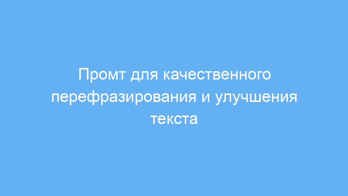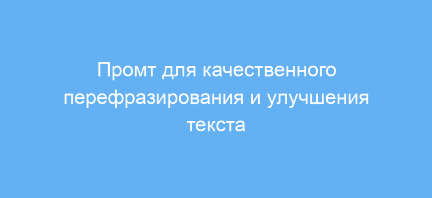 Данный промт предназначен для тех, кто хочет улучшить, перефразировать или разнообразить любой текст с помощью нейросети. Он помогает создавать уникальные варианты текста, которые отличаются по структуре и стилю от исходного, что бывает полезно при написании статей, SEO-текстов, описаний товаров или учебных материалов.