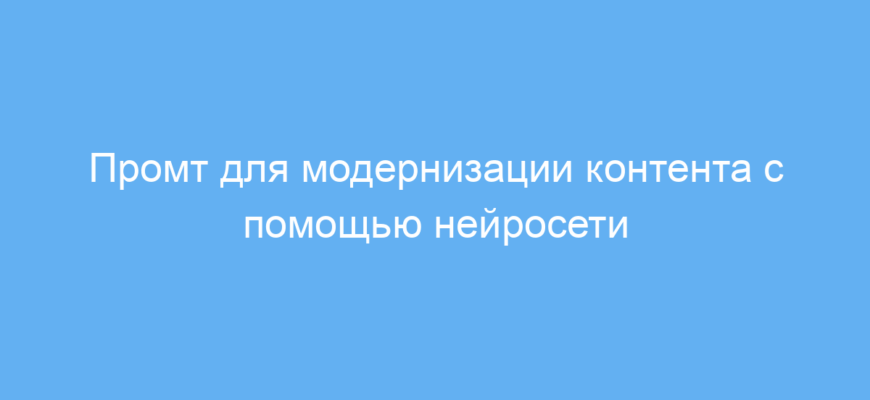 Этот промт предназначен для копирайтеров, контент-менеджеров и маркетологов, которые хотят улучшить или преобразовать существующий контент для достижения конкретных целей. Например, можно преобразовать статью в сценарий для видео, упрощённый текст для соцсетей или расширенный информационный материал для блога.