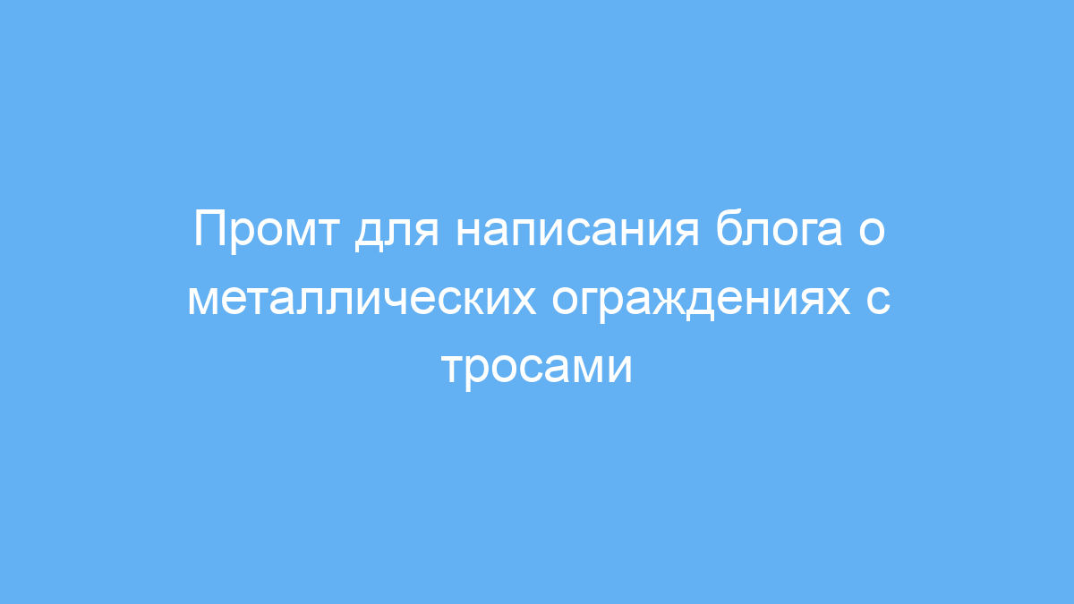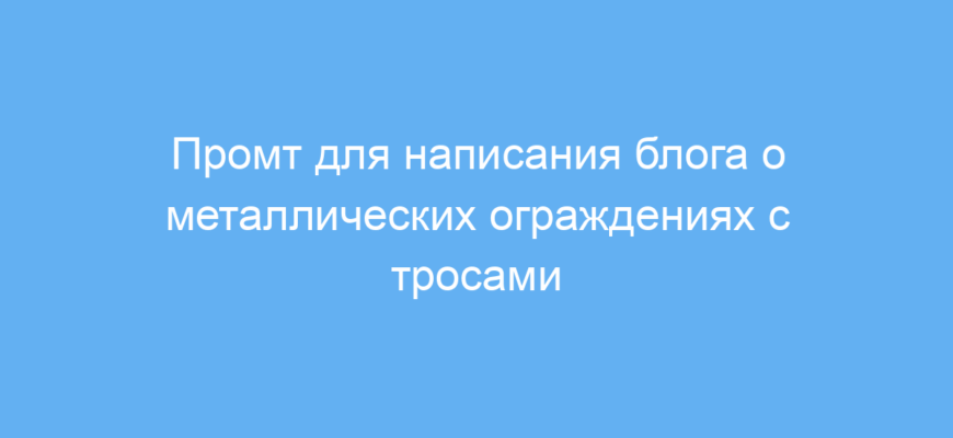 Данный промт предназначен для специалистов по созданию контента, маркетологов и владельцев сайтов, которые хотят быстро и качественно получить текст о преимуществах металлических ограждений с тросами. Он помогает решить задачу написания информативного и структурированного блога, который раскрывает тему с выгодной точки зрения для клиента.