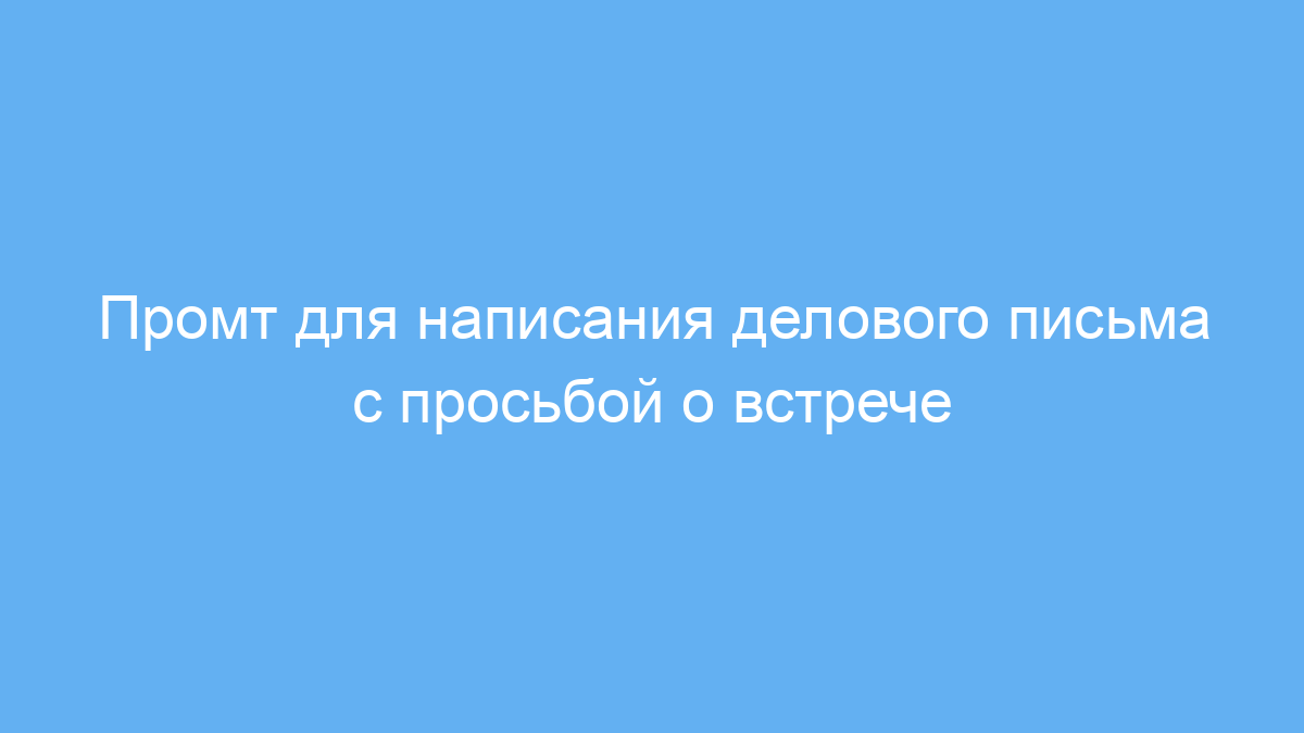 Этот промт создан для специалистов, которым необходимо составить вежливое и профессиональное письмо с запросом на деловую встречу за чашкой кофе. Чаще всего его используют менеджеры, предприниматели, консультанты и любые сотрудники, ведающие коммуникацией с потенциальными клиентами или партнерами.