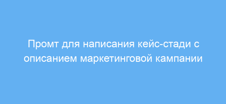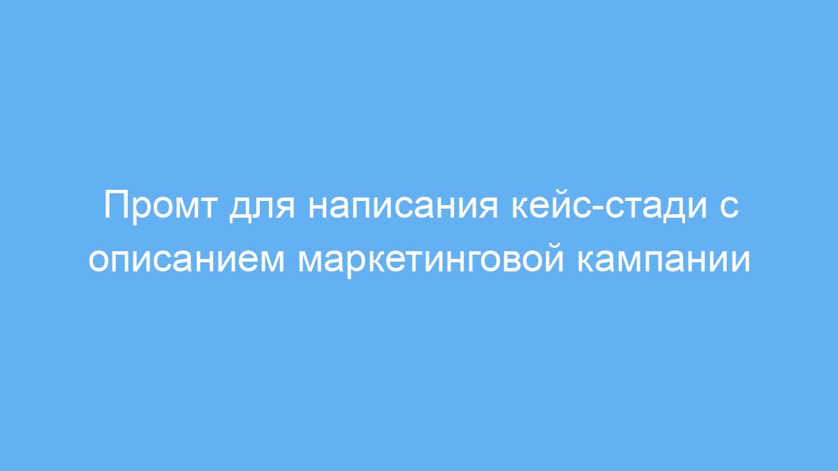Использование данного промта экономит время и помогает получить структурированный отчет по маркетинговой кампании быстро и без лишних усилий. Он пригодится как профессионалам, так и учащимся, упрощая создание качественных кейс-стади.