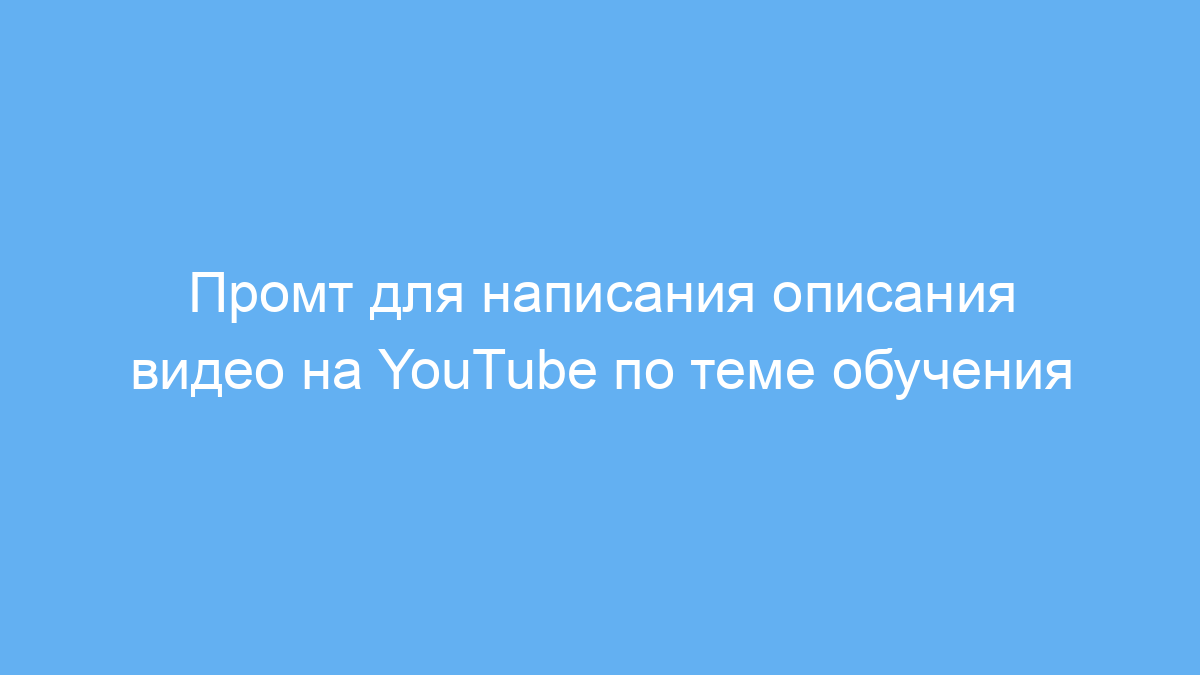 Используя данный промт, вы быстро получите готовое увлекательное описание для своих обучающих видео на YouTube. Это сэкономит время и повысит привлекательность вашего контента для зрителей, что способствует росту просмотров и подписчиков.
