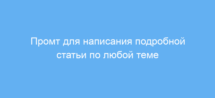 Этот промт создан для тех, кто хочет быстро получить развернутую и понятную статью по любой выбранной теме. Он особенно полезен для новичков, которые только начинают изучать новую область, а также для контент-мейкеров, маркетологов и преподавателей, которым нужно создать доступный и информативный текст.
