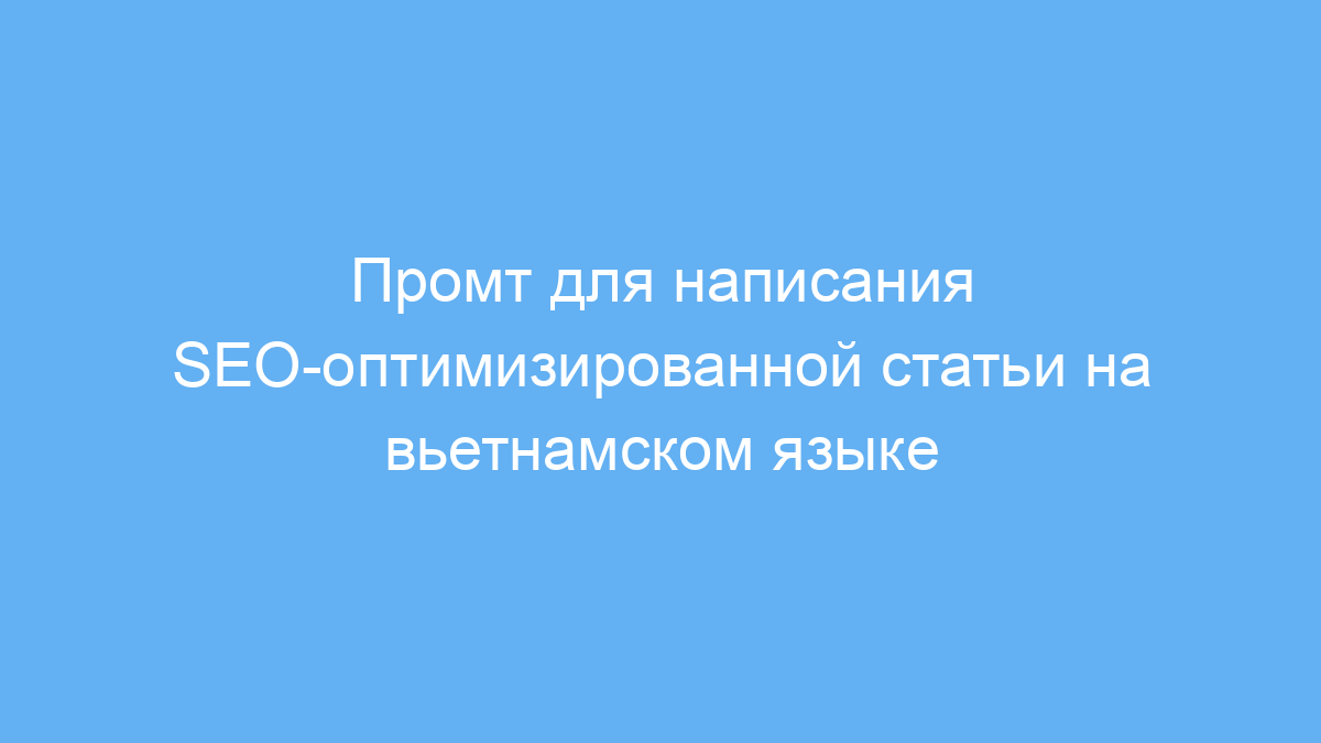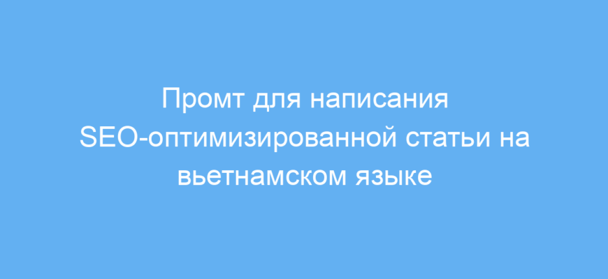 Использование данного промта экономит время и силы на создание качественных SEO-статей на вьетнамском языке. Он упрощает работу и помогает быстро получить структурированный, уникальный и легко читаемый контент, который будет хорошо ранжироваться в поисковых системах.