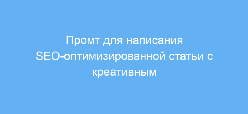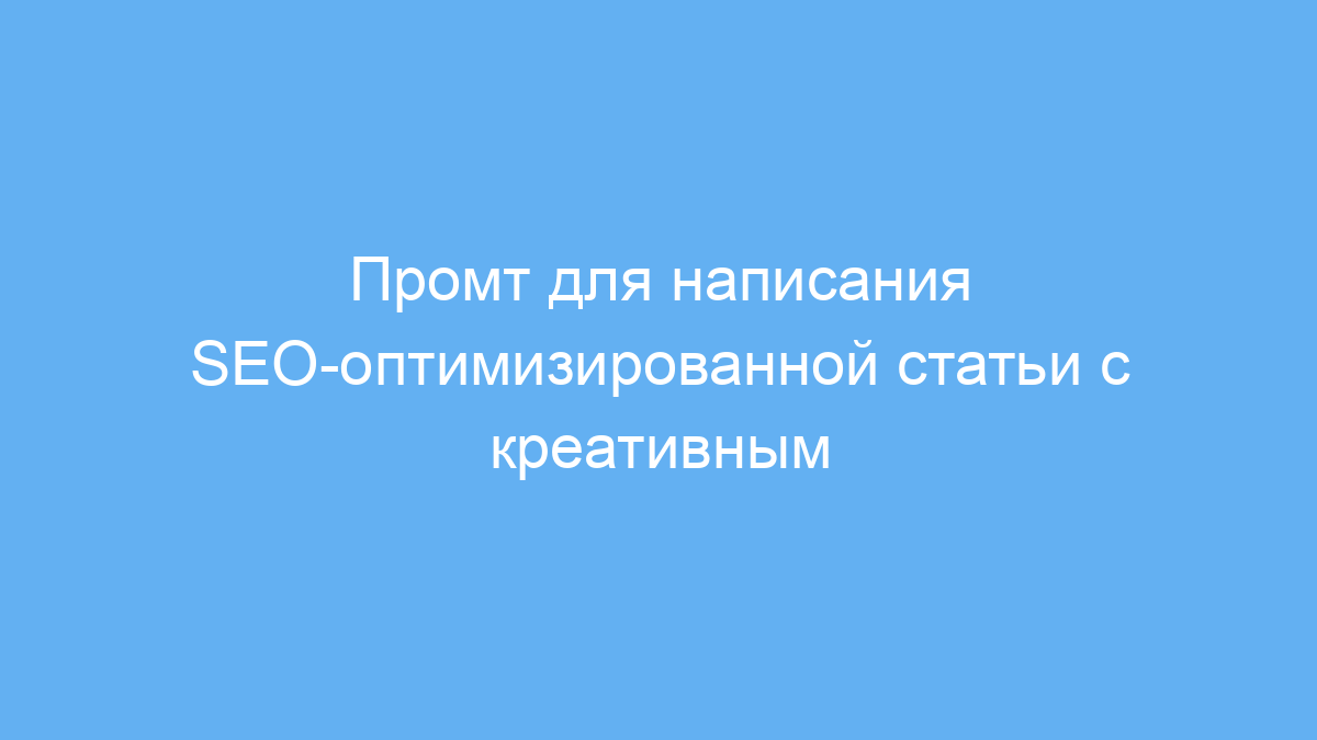Этот промт создан для специалистов в области SEO, копирайтинга и лингвистики, а также для всех, кто хочет быстро и качественно создавать уникальные SEO-оптимизированные статьи. Если вы занимаетесь контент-маркетингом, продвижением сайтов, ведёте блог или учитесь писать тексты, этот промт значительно облегчит вам задачу. Он поможет сгенерировать структуру статьи с продуманным заголовком и мета-описанием, а затем создать объёмный и интересный текст, который хорошо ранжируется поисковыми системами.