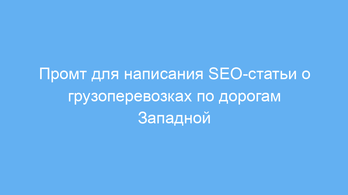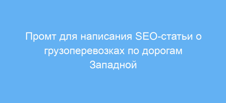 Этот промт предназначен для копирайтеров, маркетологов и владельцев сайтов, которым нужно создать эффективный SEO-текст про грузоперевозки по Западной Европе. Он помогает быстро получать структурированные статьи, ориентированные на целевую аудиторию и поисковые системы.