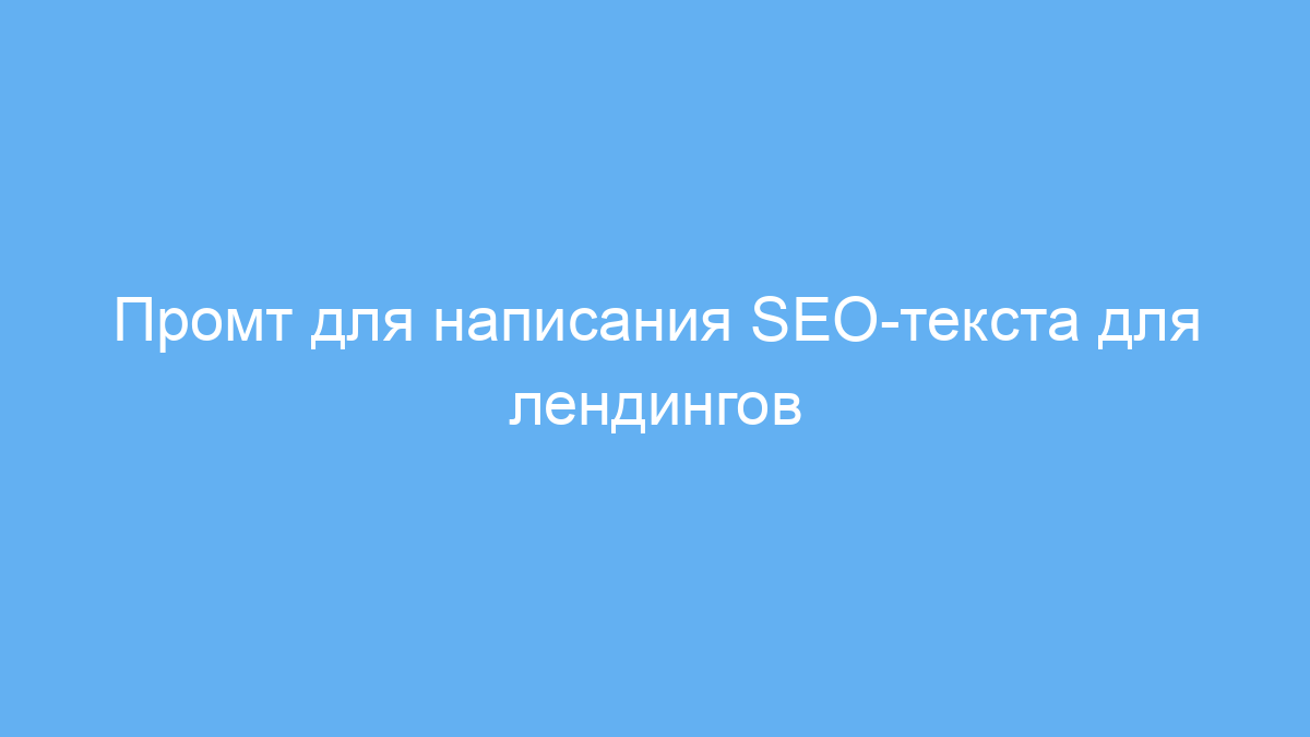 Данный промт предназначен для контент-мейкеров, маркетологов и владельцев бизнеса, которые хотят быстро создавать SEO-оптимизированные тексты для лендингов с высокой конверсией. Он помогает структурировать информацию о продукте или услуге, учесть поисковые запросы с покупательским намерением и составить продающий текст, ориентированный на аудиторию сайта.