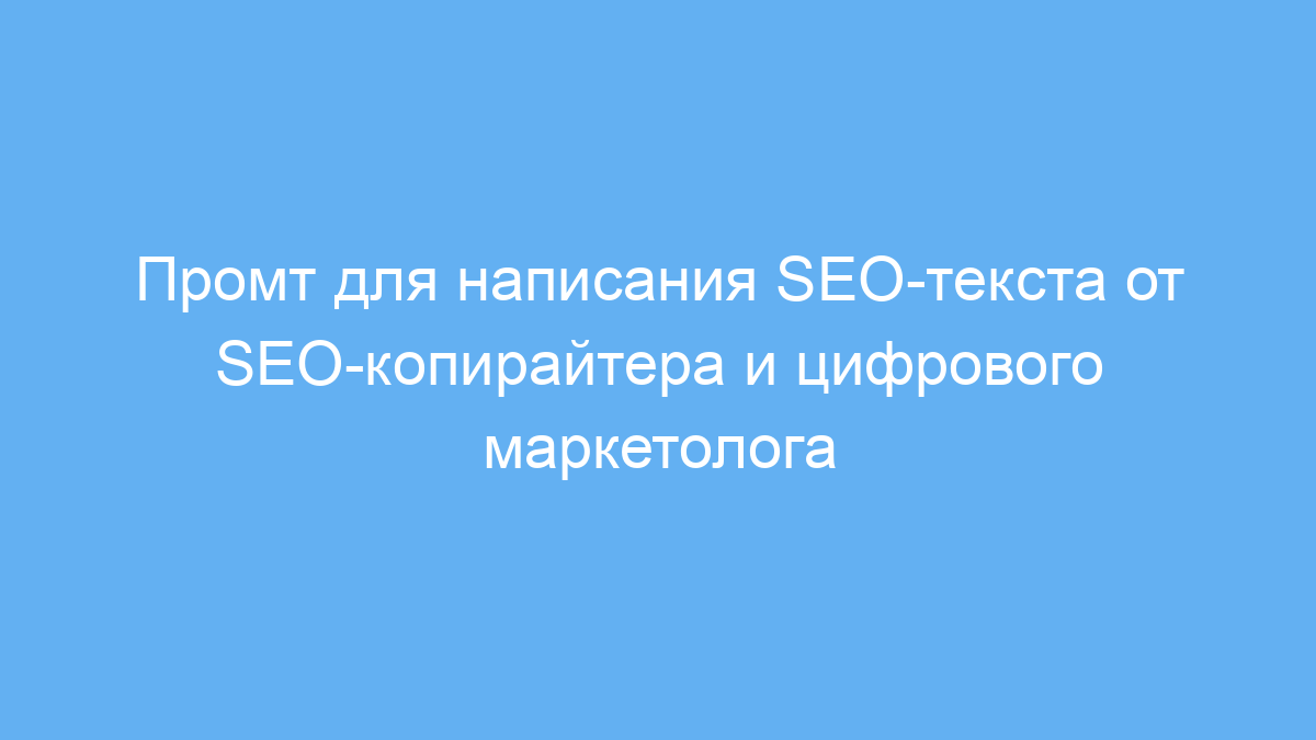 - Используйте промт, когда нужно быстро создать SEO-оптимизированный текст с понятной структурой и живым языком.