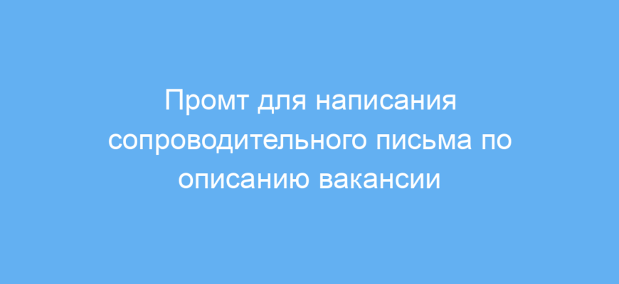 Этот промт создан для тех, кто хочет быстро и профессионально написать сопроводительное письмо на основе описания вакансии. Он полезен соискателям работы, рекрутерам и специалистам по кадрам, которые желают сэкономить время и обеспечить высокий уровень текста. С помощью промта можно легко выделить ключевые моменты из описания вакансии и подчеркнуть в письме свои навыки и опыт, соответствующие требованиям работодателя.