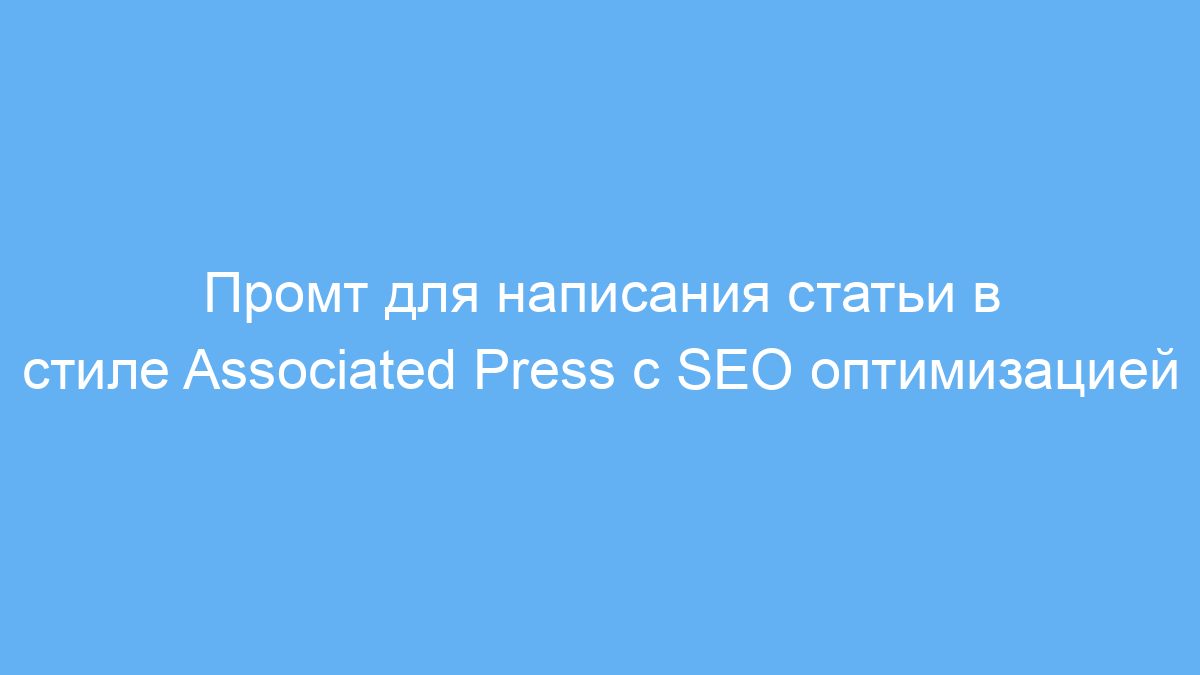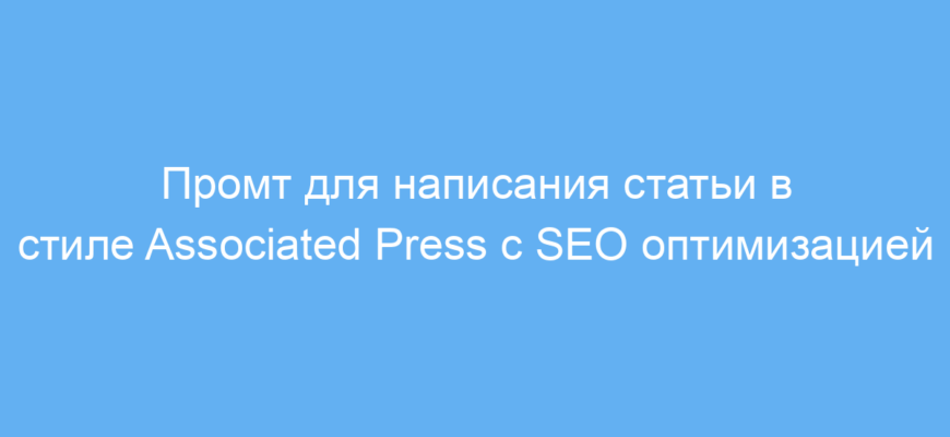 Этот промт помогает быстро создавать статьи и новости высокого качества в узнаваемом стиле Associated Press, сочетая требования SEO и актуальные журналистские стандарты. Он экономит время и повышает эффективность работы с текстом, облегчая продвижение контента в интернете и улучшая восприятие читателем.