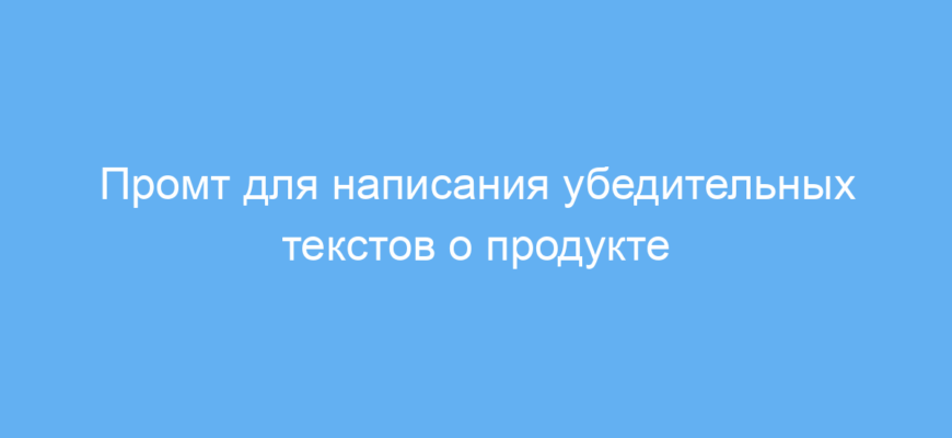 Промт воспринимает информацию о продукте и целевой аудитории, а затем генерирует уникальный текст, подчёркивающий главные достоинства и стимулирующий действовать — например, совершить покупку или уточнить детали.