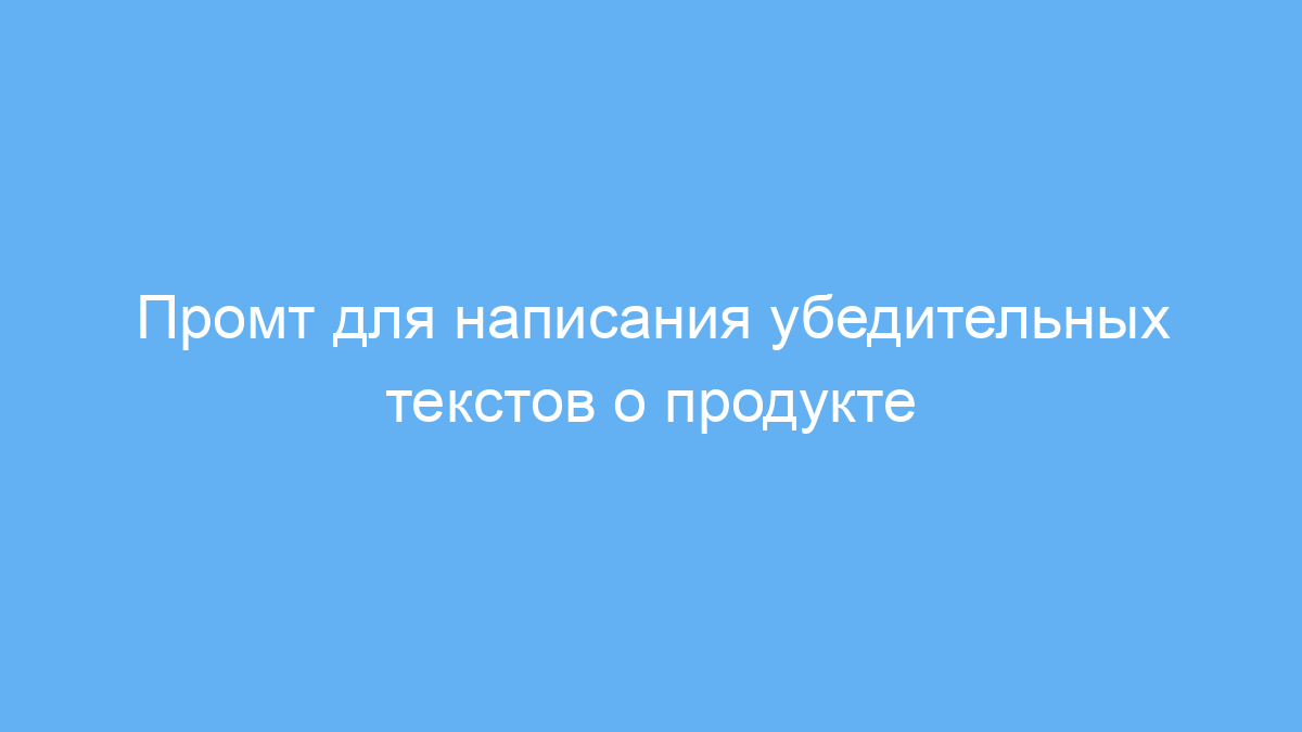 Этот промт создан для копирайтеров, маркетологов и владельцев бизнеса, которые хотят быстро получить качественный, убедительный текст для описания своих товаров или услуг. Он помогает сформулировать преимущества продукта так, чтобы заинтересовать потенциальных клиентов и подтолкнуть их к покупке.