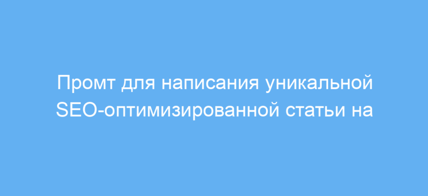 В современном мире создания контента качественные тексты — ключ к успеху в SEO и маркетинге. Этот промт поможет быстро и эффективно писать статьи, которые одновременно информативны и увлекательны, с правильной структурой и стилем.