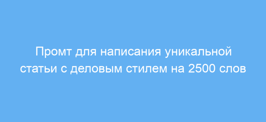 Мета-описание: Создавайте уникальные статьи в деловом стиле с нашим промтом. Экономьте время и повышайте эффективность контента! Попробуйте прямо сейчас.