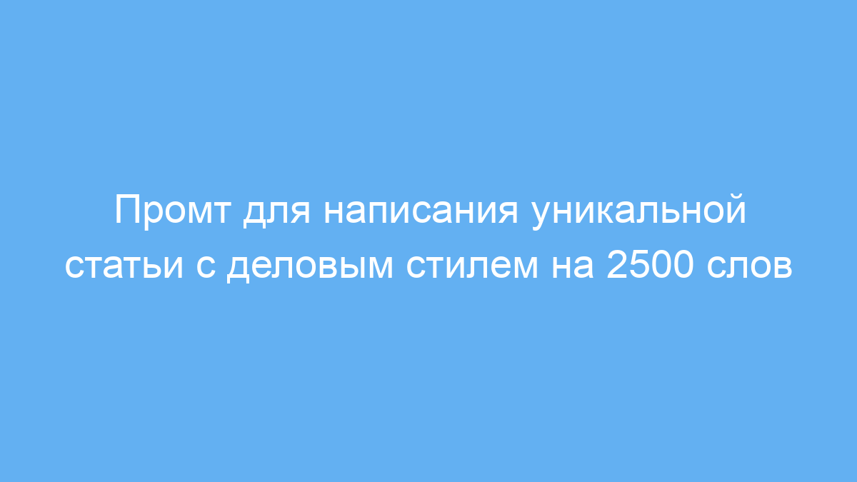 Отрывок (excerpt): Подробный промт для генерации деловых статей объёмом 2500 слов с оптимальной SEO-структурой и стилем.