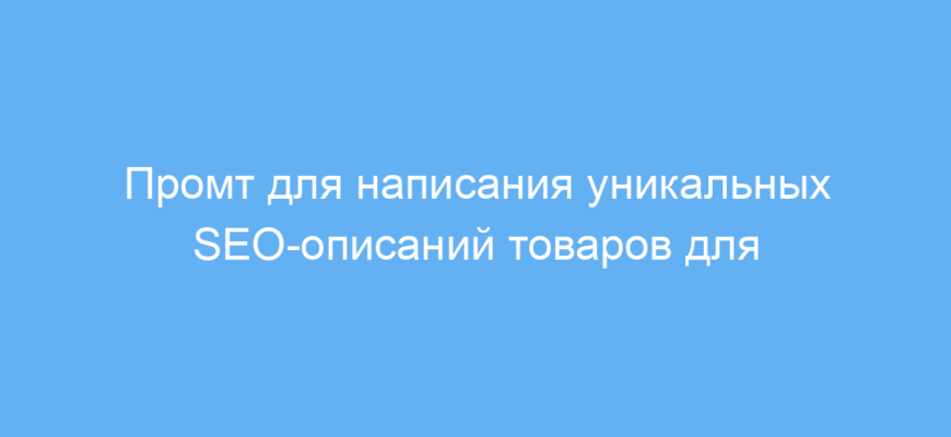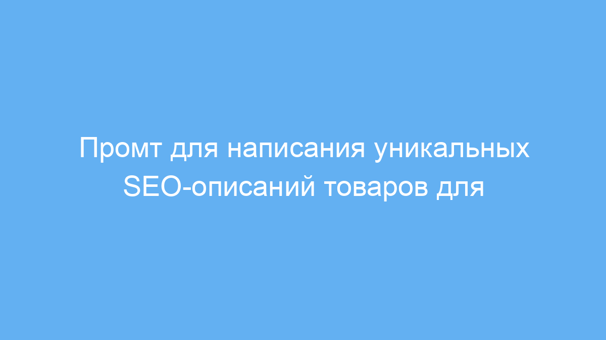 Принцип работы промта прост: нейросеть получает подробные данные о товаре — название, особенности и технические характеристики — и на их основе генерирует текст, в котором вопросами вовлекает читателя, раскрывает преимущества товара, добавляет эмоциональную составляющую и завершает всё полезной информацией об изделии. Такой текст помогает увеличить продажи и улучшить видимость сайта в поиске.