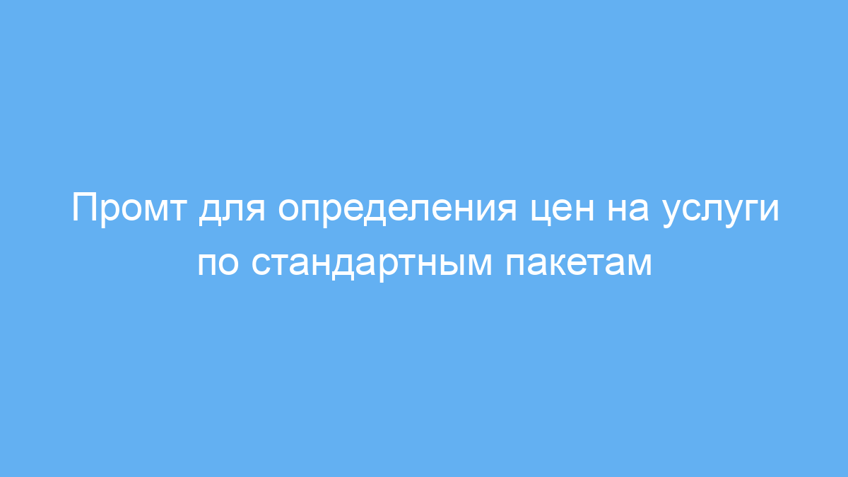 Этот промт предназначен для специалистов и предпринимателей, которые хотят грамотно сформировать ценовую политику на свои услуги. В современном бизнесе правильно установить цену — значит выделиться на фоне конкурентов и привлечь клиентов. Промт помогает решить проблему неопределённости с ценообразованием и создать понятные и привлекательные пакеты услуг.