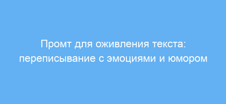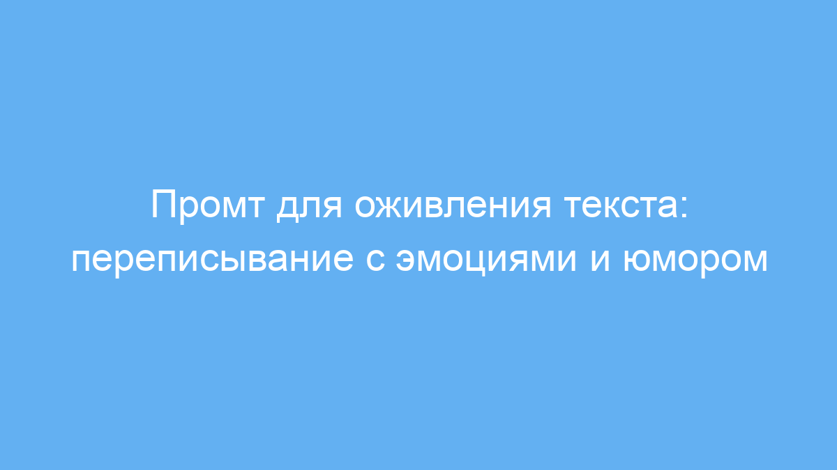 Промт помогает решить проблему «сухости» и «роботизированности» текста, делая его более человечным, эмоциональным и даже немного смешным. Благодаря этому повышается интерес аудитории, а информация становится доступнее для восприятия в работе, учебе или маркетинговых целях.