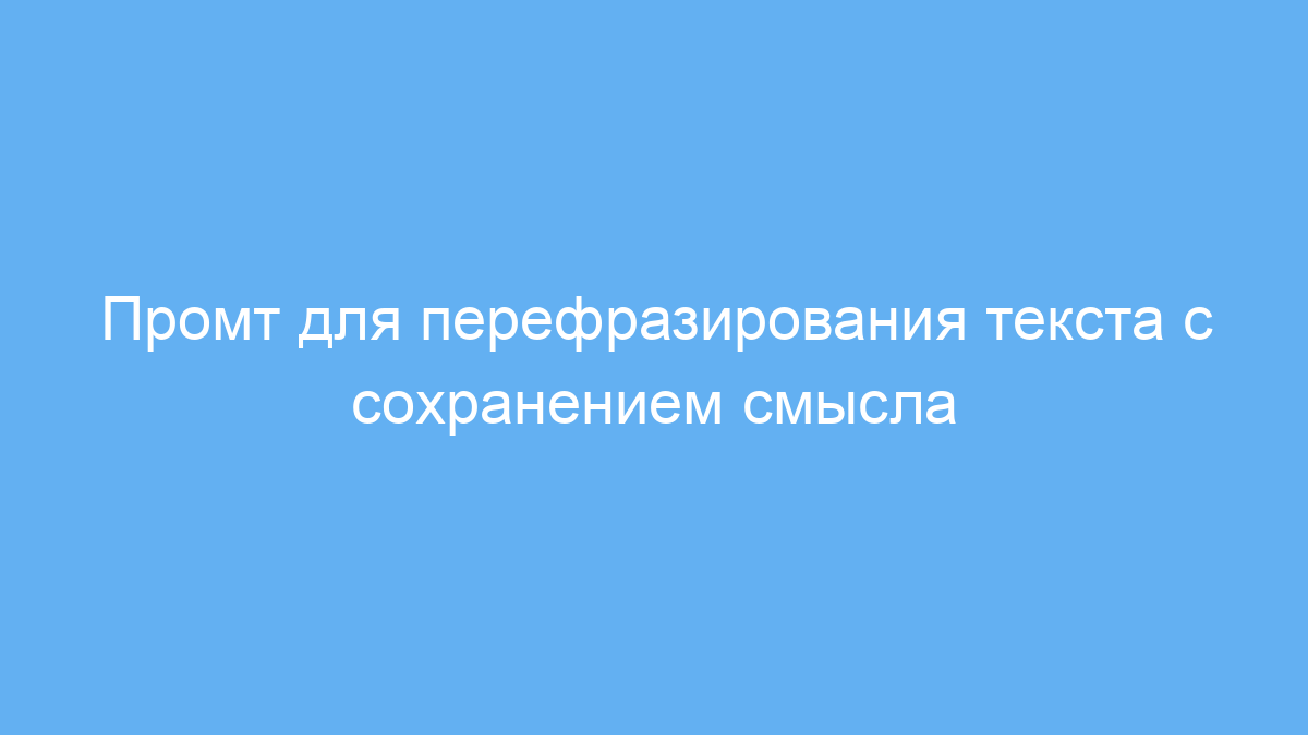 Этот промт экономит время и силы при перефразировании текста, позволяя быстро получить связный и точный вариант исходного материала. Он особенно полезен для тех, кто хочет разнообразить стилистику текста без изменения смысла, повысить его уникальность и сделать материал более доступным.