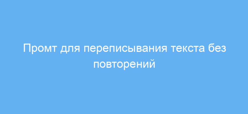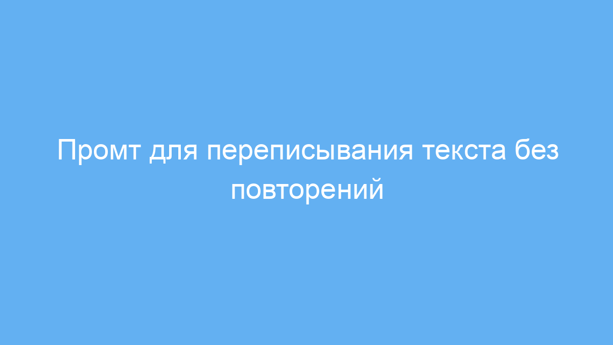 Можно дополнить основной промт конкретным количеством вариантов, например: «Перепишите данный текст в трёх вариантах, чтобы избежать повторений».