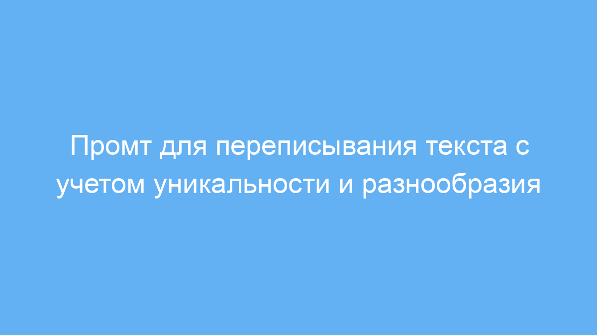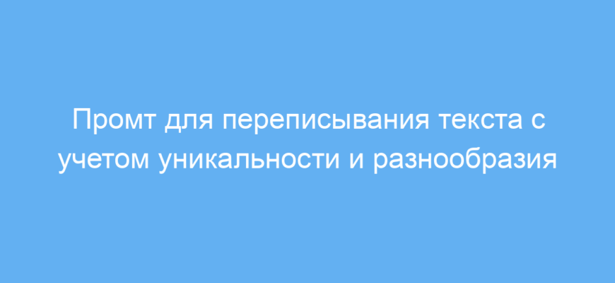 Использование данного промта существенно повышает качество переписывания текстов. Он помогает создавать уникальные, разнообразные и естественные по стилю материалы, которые привлекают внимание читателей и поисковых систем. Это экономит время на ручную редактуру и повышает шансы на успешное продвижение контента.