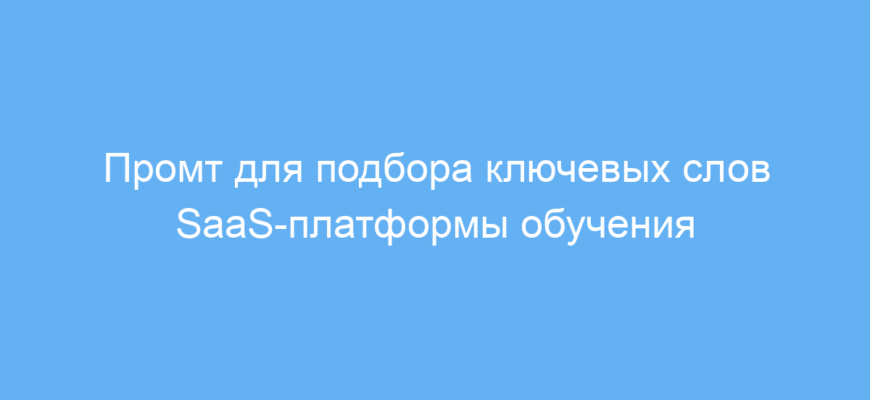 Промт работает просто: пользователь обращается к нейросети как к SEO-эксперту, которая подбирает список ключевых слов, учитывая особенности SaaS-решений в обучении и репетиторстве. Такой подход экономит время и повышает точность выбора ключевых фраз.