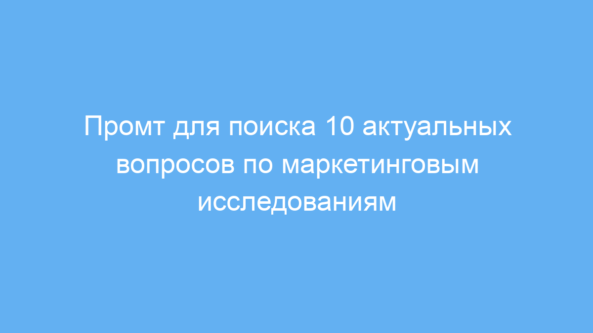 Этот промт предназначен для специалистов, которым нужно быстро получить список актуальных вопросов по конкретной теме для заданной целевой аудитории. Он особенно полезен маркетинговым исследователям, копирайтерам, аналитикам и маркетологам, а также тем, кто работает с нейросетями для автоматизации сбора информации.