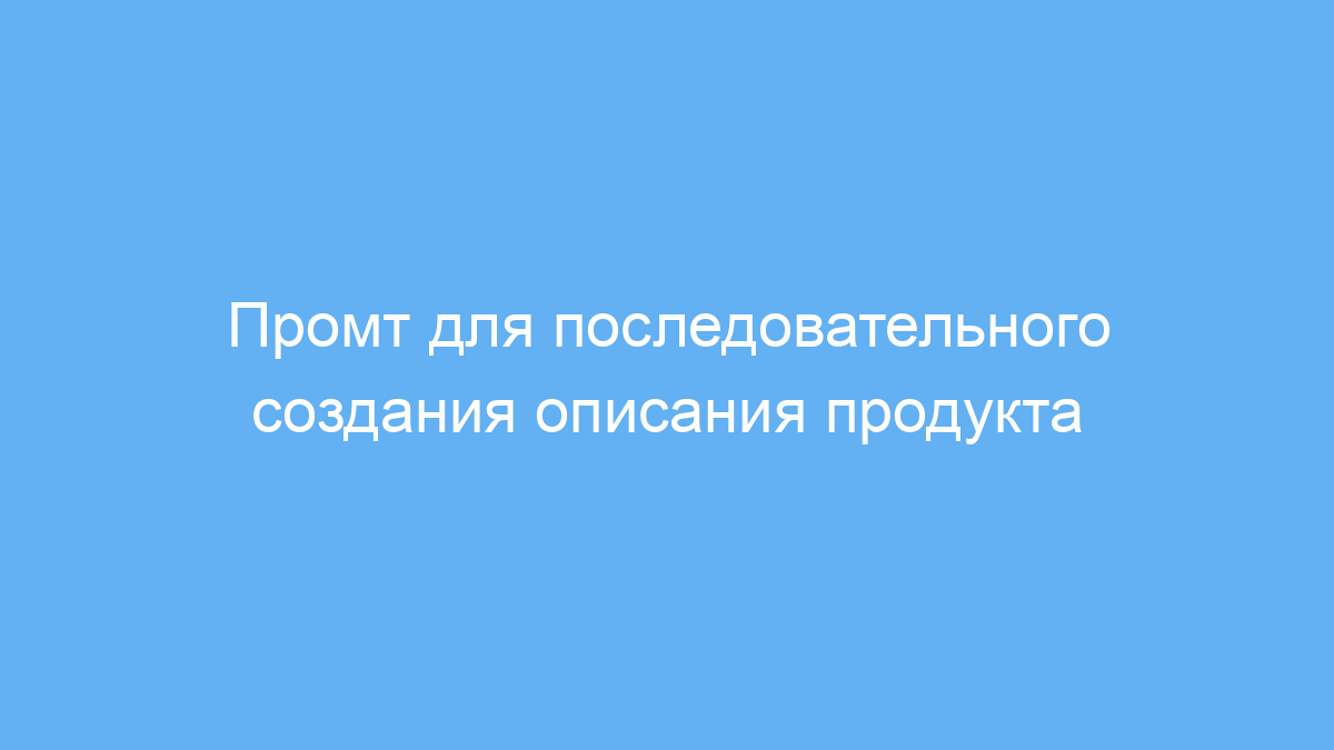 Промт решает проблему разброса информации и хаотичного подхода при описании товара. Благодаря поэтапным вопросам пользователь четко и последовательно формирует полную картину и получает на выходе готовое описание с учетом особенностей и преимуществ продукта.