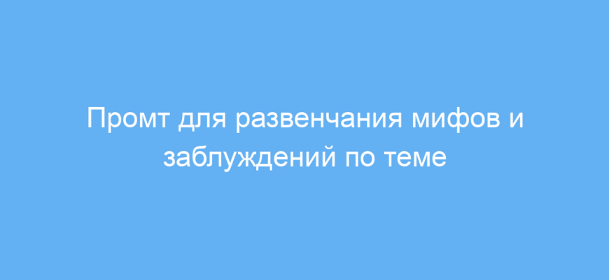Промт упрощает процесс написания, задавая чёткий сценарий: от введения и объяснения базовых понятий до развенчания минимум трёх мифов с выводом и альтернативными взглядами. Это решает проблему непоследовательного и поверхностного изложения и экономит время на сбор материала и структурирование текста.