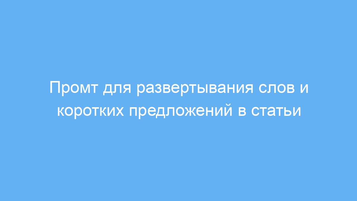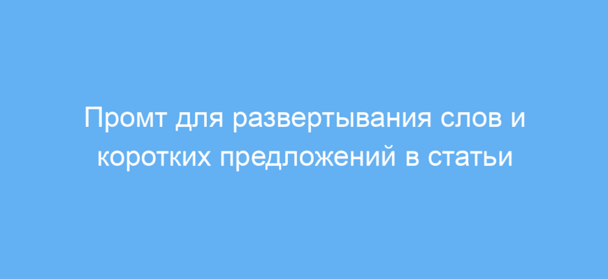 Промт решает проблему недостатка структуры и объема в исходном материале, позволяя нейросети корректно расширить мысль, сохранив изначальный смысл. Он работает по принципу запроса к нейросети «развернуть» краткие данные в полноценный связный текст объемом не более 600 слов.