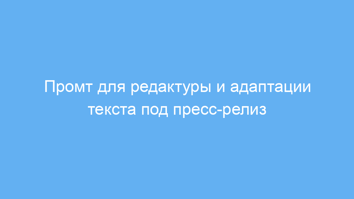Этот промт полезен редакторам, копирайтерам, PR-специалистам и владельцам бизнеса, которым нужно преобразовать разные тексты в формат пресс-релиза. Он помогает сделать текст более ясным, согласованным и подходящим для официальных объявлений, таких как запуск продукта, объявление политики или фондрайзинговая кампания.