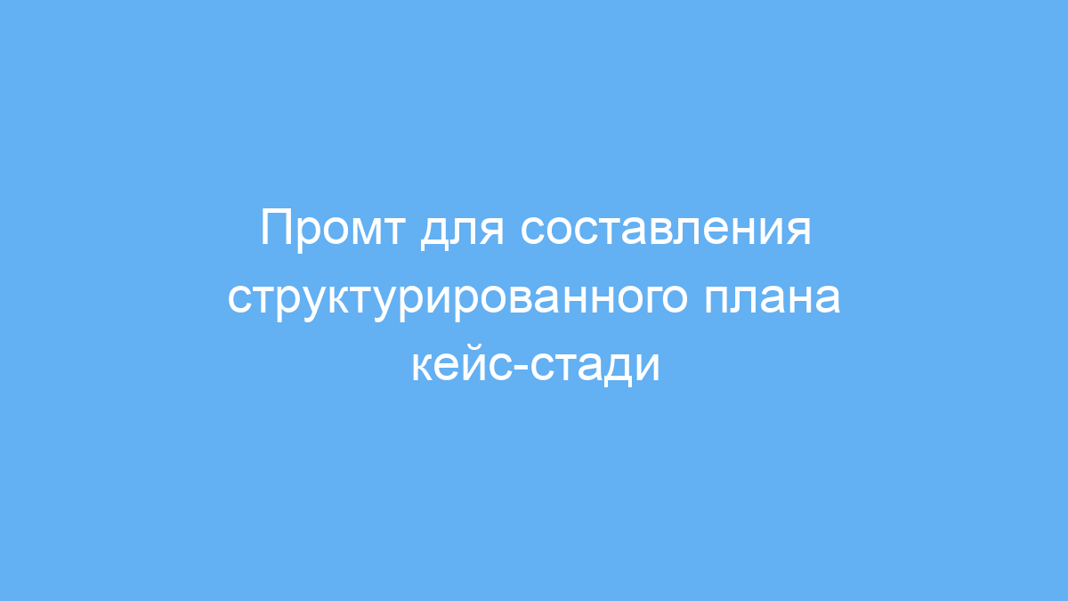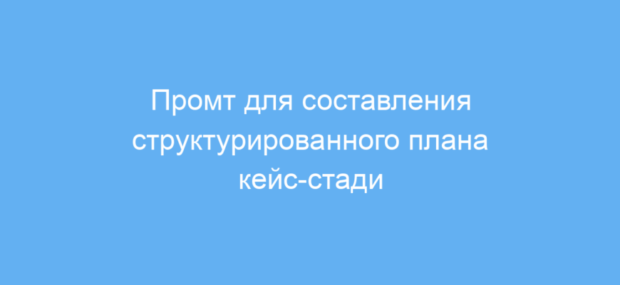 Этот промт значительно упрощает процесс подготовки кейс-стади, делая структуру и последовательность анализа понятной и логичной. Вы экономите время на планирование и получаете чёткий каркас, который легко развивать в полноценную статью или доклад.