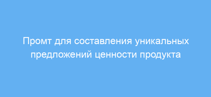 Зачастую представление ценности продукта становится сложной задачей. Наш промт решает эту проблему, формируя понятный и привлекательный текст, который можно использовать для рекламы, лендингов или описаний товара. Промт подходит для разных сфер — от IT и услуг до товаров повседневного спроса.