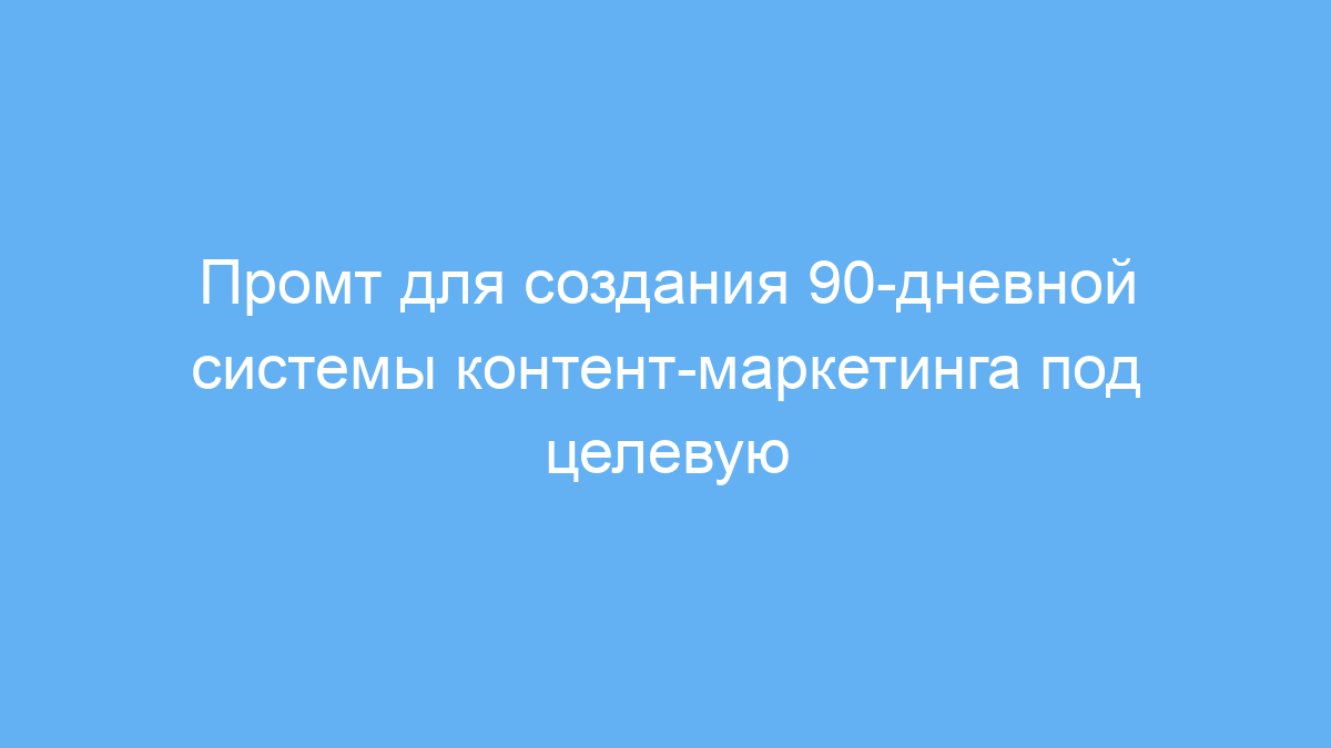 Этот промт помогает быстро и просто разработать полный план создания качественного контента на 90 дней. Он экономит время и силы, структурирует процесс под задачи вашей аудитории и помогает системно решать её проблемы с помощью трёх типов материалов на каждую задачу. Использование промта делает контент-маркетинг более планомерным и результативным.