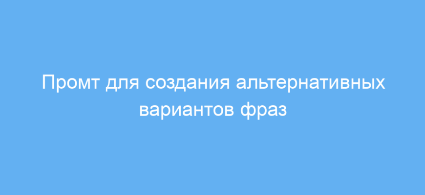 Использование данного промта помогает быстро находить разные формулировки для одной фразы, что облегчает создание уникальных текстов и экономит время при работе с текстами любого рода.