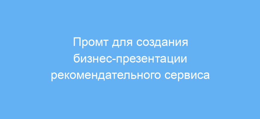 Использование данного промта позволяет быстро создать качественную, понятную и ёмкую бизнес-презентацию рекомендательного сервиса фильмов и сериалов на ИИ. Вы экономите время на формулировки и структурирование, получая сразу готовый текст, который поможет привлечь клиентов и инвесторов, выделить преимущества сервиса и объяснить его работу.