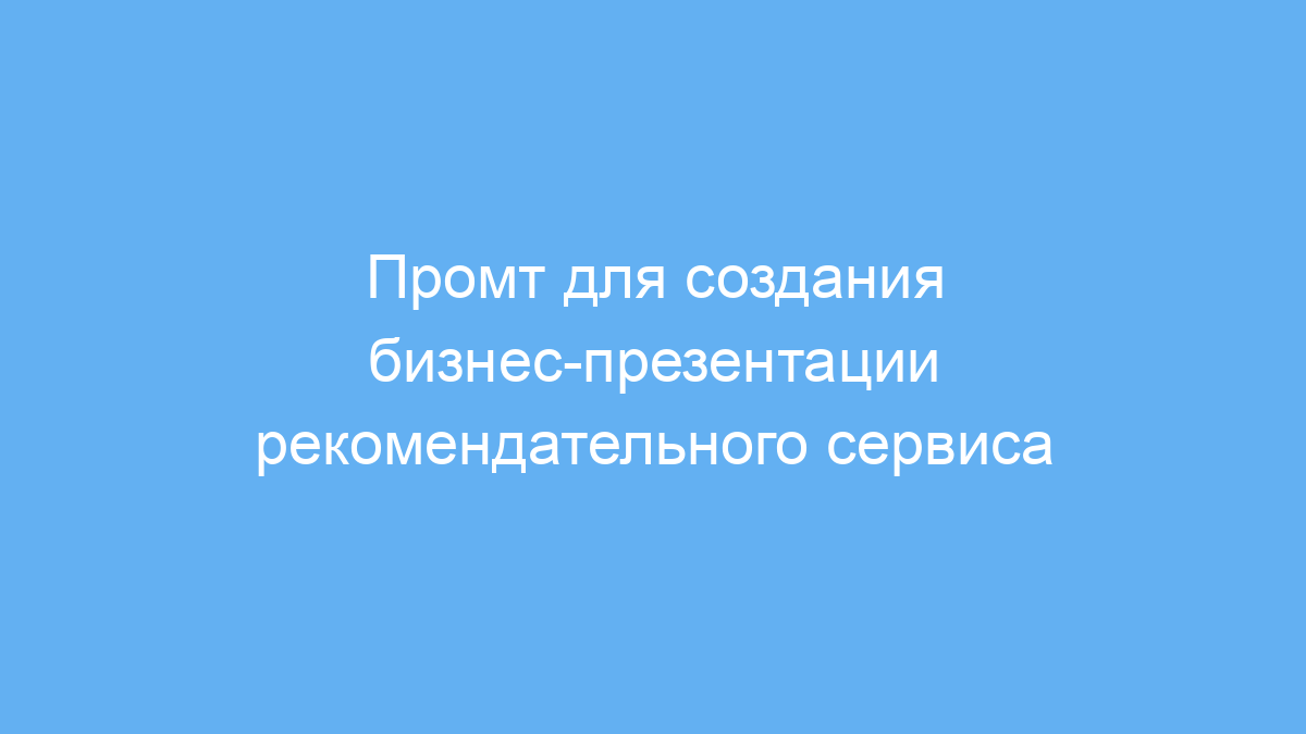 Этот промт подходит предпринимателям, маркетологам, стартаперам и создателям контента, которые разрабатывают или продвигают рекомендательные сервисы фильмов и сериалов на базе искусственного интеллекта. Он поможет быстро сформировать качественную бизнес-презентацию, выделяющую ключевые функции и преимущества сервиса.