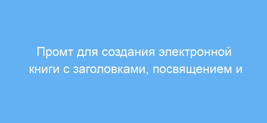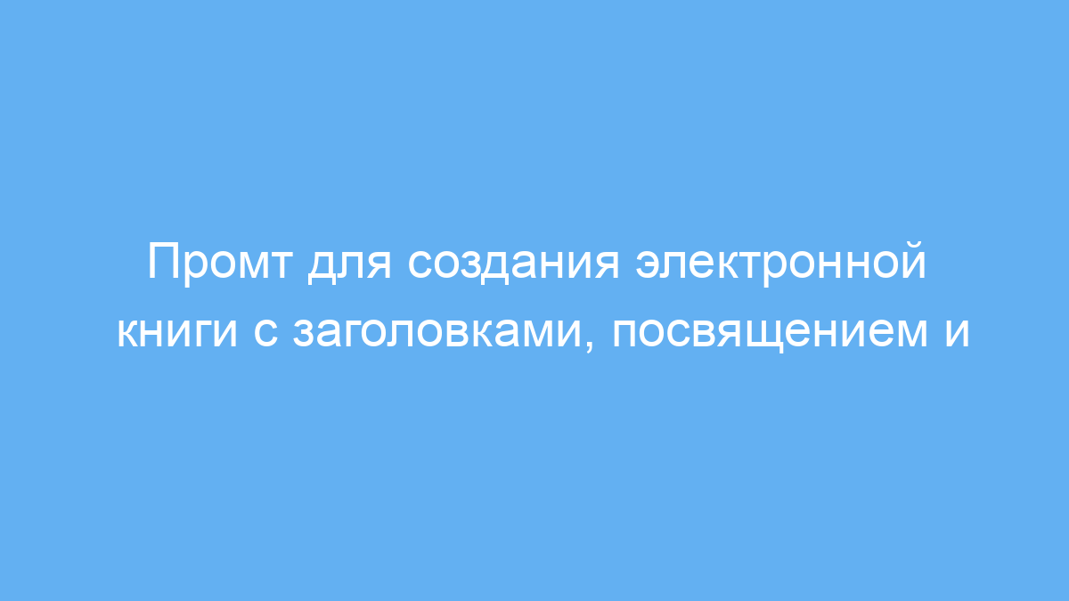 С данным промтом вы значительно упрощаете разработку электронной книги любой тематики. Он помогает победить творческий ступор, повышает качество текста, при этом экономя время и силы. Благодаря структурированному подходу и персонализации вы получите не просто текст, а экспрессивное, увлекательное и полезное произведение.