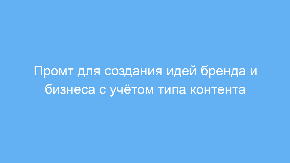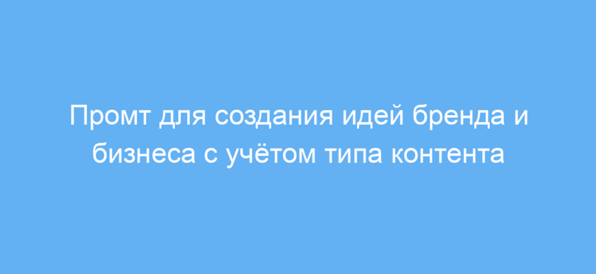 Этот промт предназначен для предпринимателей, маркетологов, копирайтеров и владельцев брендов, которым требуется эффективно генерировать идеи для развития бизнеса и продвижения через разные виды контента. Если вы хотите, чтобы искусственный интеллект полностью понял специфику вашего бренда и аудитории перед тем, как предлагать идеи, этот промт станет надёжным помощником.
