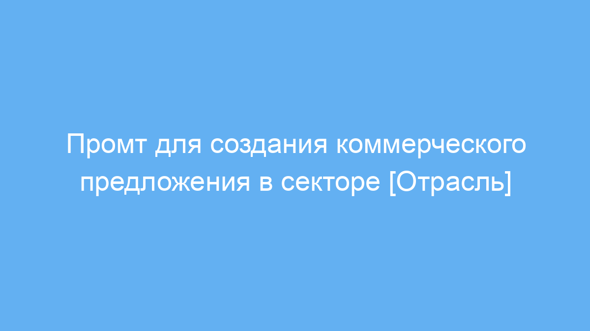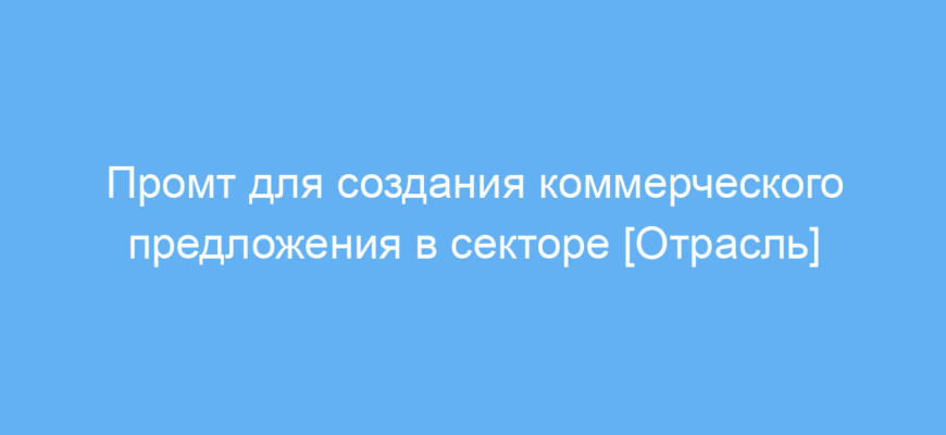 Его основная задача — собрать ключевую информацию о компании, услугах, ценах и ожидаемых результатах, чтобы представить её в выгодном свете и заинтересовать потенциального клиента. Промт формирует готовый текст предложения на основе введённых данных, что экономит время и улучшает качество. Пользователь просто подставляет название отрасли и вводит сведения о своей компании, а нейросеть генерирует полный текст.