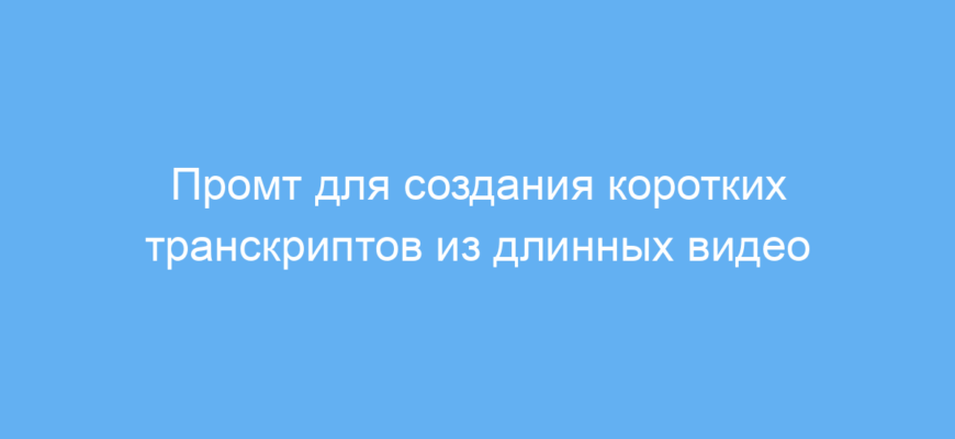 Промт решает проблему большого объёма исходного материала, делая контент более доступным и привлекательным для аудитории. Он экономит время на ручную обработку видео и помогает удерживать внимание зрителей, предоставляя только ключевые идеи и важные моменты.