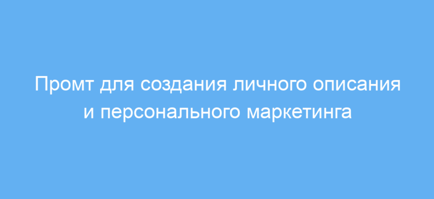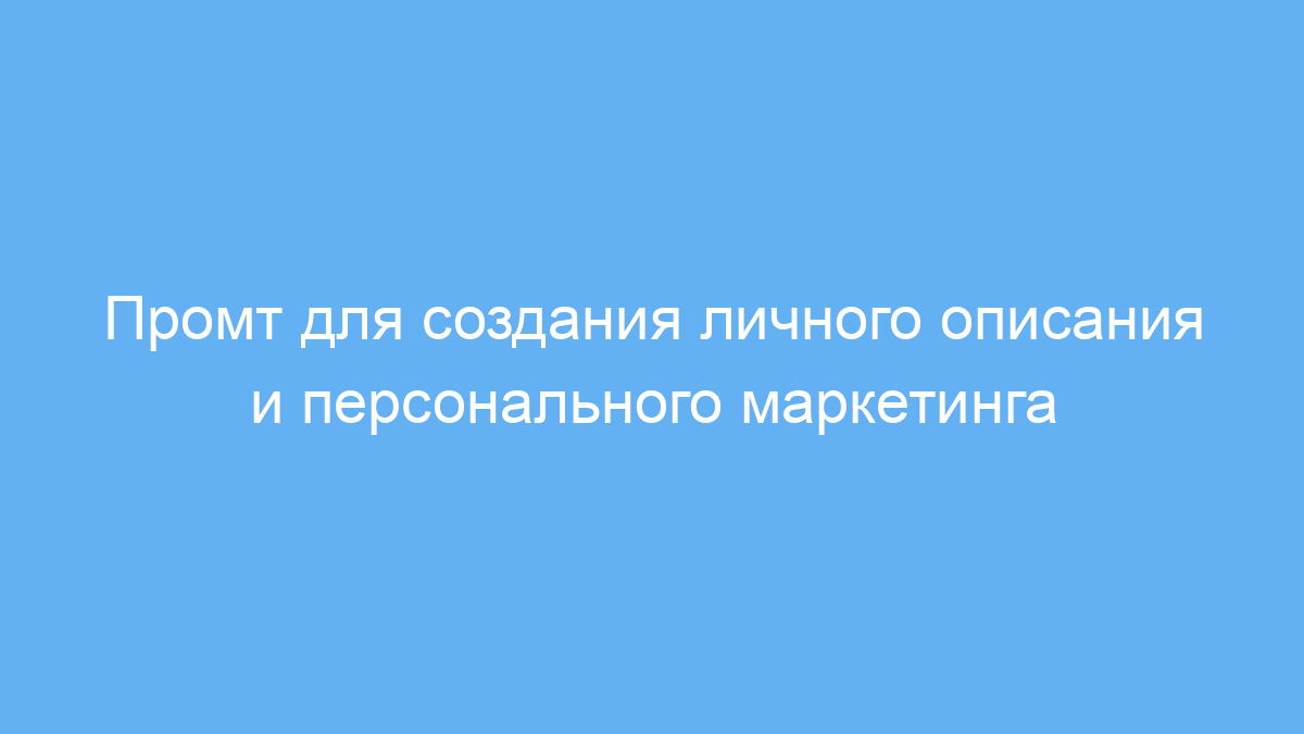 Проблема, которую решает промт, — это трудности с правильной подачей личного бренда и формированием качественного текста для резюме, профилей в соцсетях или на сайте. Используя этот промт, пользователь получает текст, который привлекает внимание целевой аудитории, улучшает онлайн-присутствие и способствует достижению профессиональных целей.