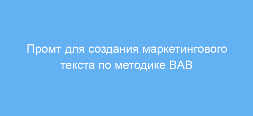 Этот промт экономит ваше время и силы при создании продающих маркетинговых текстов. Он помогает лучше структурировать сообщение, делая его понятным и убедительным для целевой аудитории. Работа с нейросетью становится проще и эффективнее за счёт чёткой схемы BAB.