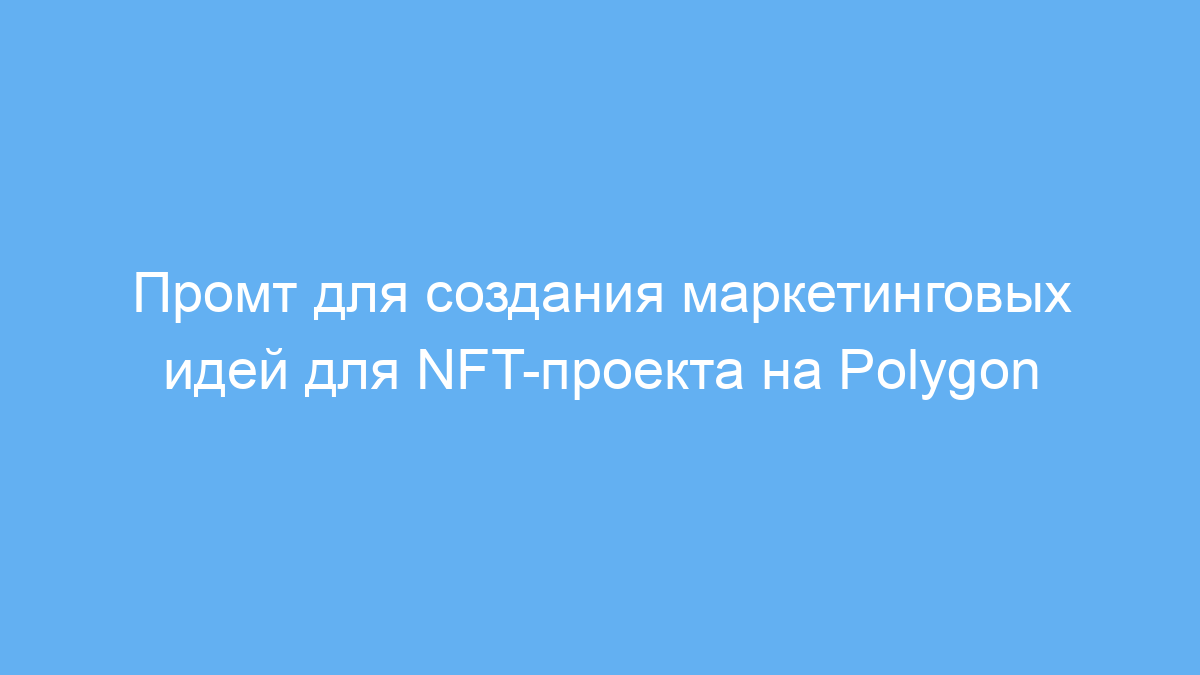 Этот промт предназначен для маркетологов, копирайтеров и владельцев NFT-проектов, которые хотят разработать креативную и эффективную стратегию продвижения. Особенно он будет полезен тем, кто работает с блокчейн-проектами и ищет нестандартные идеи для повышения продаж и вовлечения аудитории.