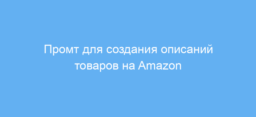 Работает промт просто: вы вводите название товара и его ключевое преимущество, а нейросеть генерирует сжатое (до 1000 символов) и профессиональное описание в одном абзаце. Описание содержит выгодные акценты и помогает эффективно продавать товар на Amazon.