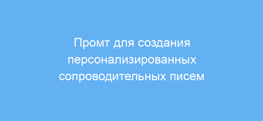 Данный промт предназначен для соискателей, которые хотят быстро и грамотно составить сопроводительное письмо при отклике на вакансии. С его помощью можно легко подчеркнуть свои ключевые навыки и опыт, а также выразить заинтересованность в выбранной должности.