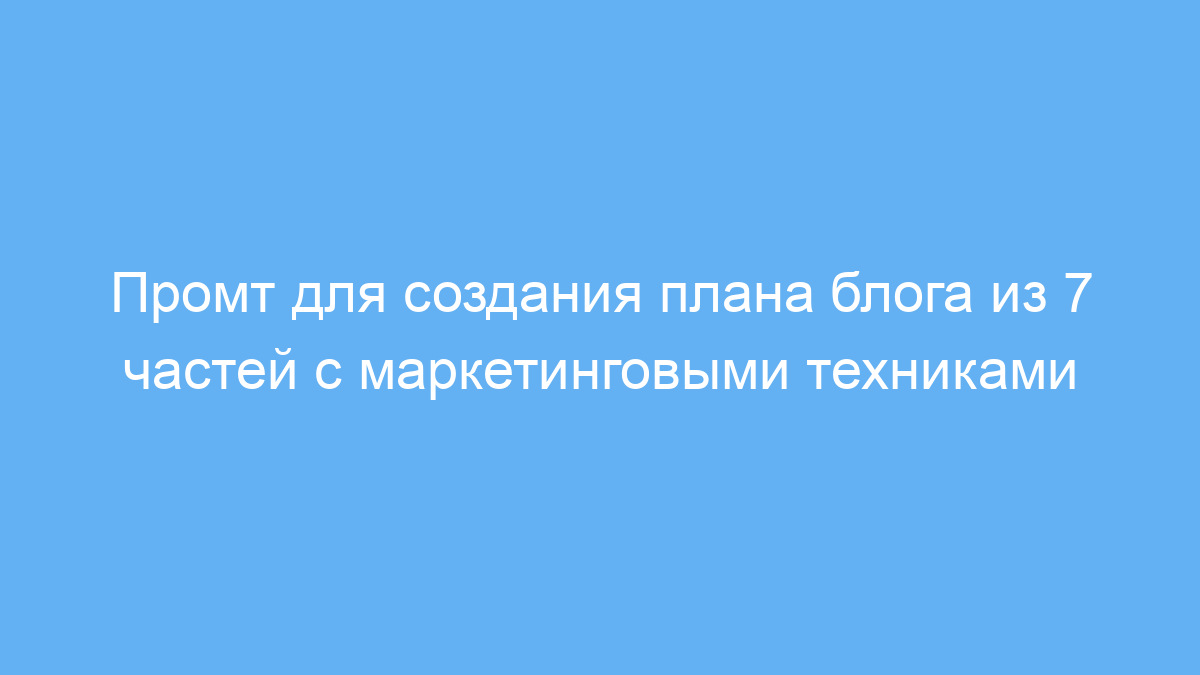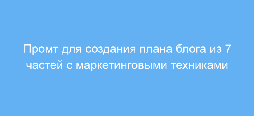 Используя этот промт, вы получаете быстрый и структурированный план блога с применением маркетинговых техник. Это экономит время и помогает создавать контент, который цепляет и удерживает внимание аудитории.