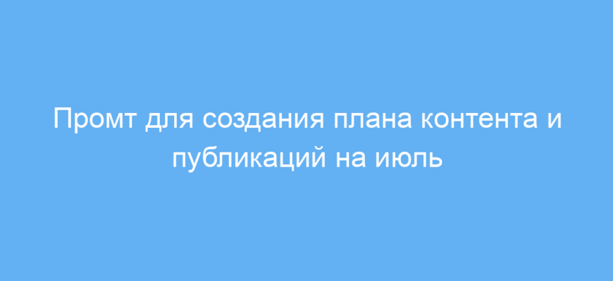Для работы промта достаточно указать нужные параметры: тематику контента, конкретные направления статей, цель публикаций. На основе этих данных нейросеть формирует подробный план коммуникаций на июль с полезной дополнительной информацией.